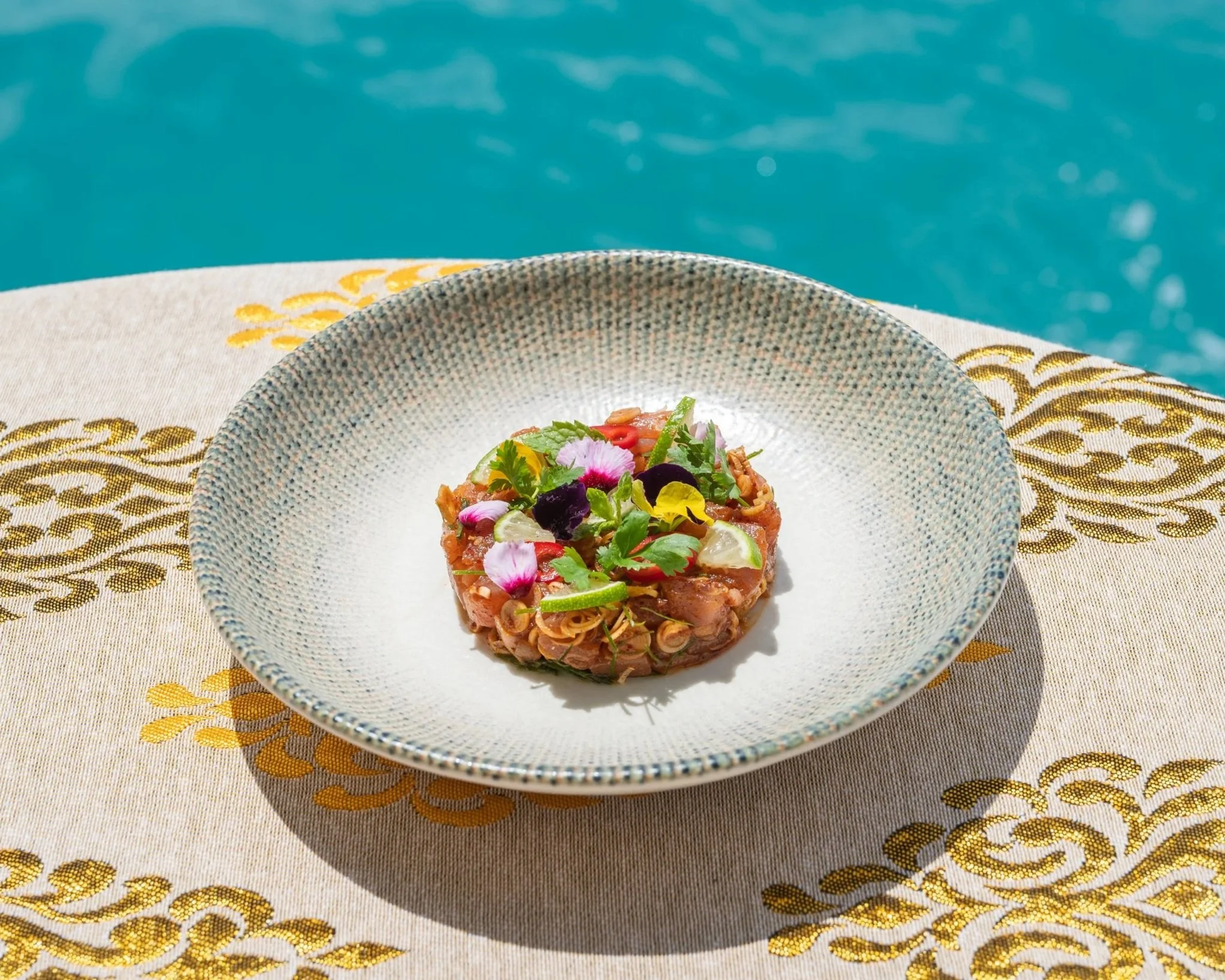 Жёлтопёрый тунец со свежими травами и фирменным соусом