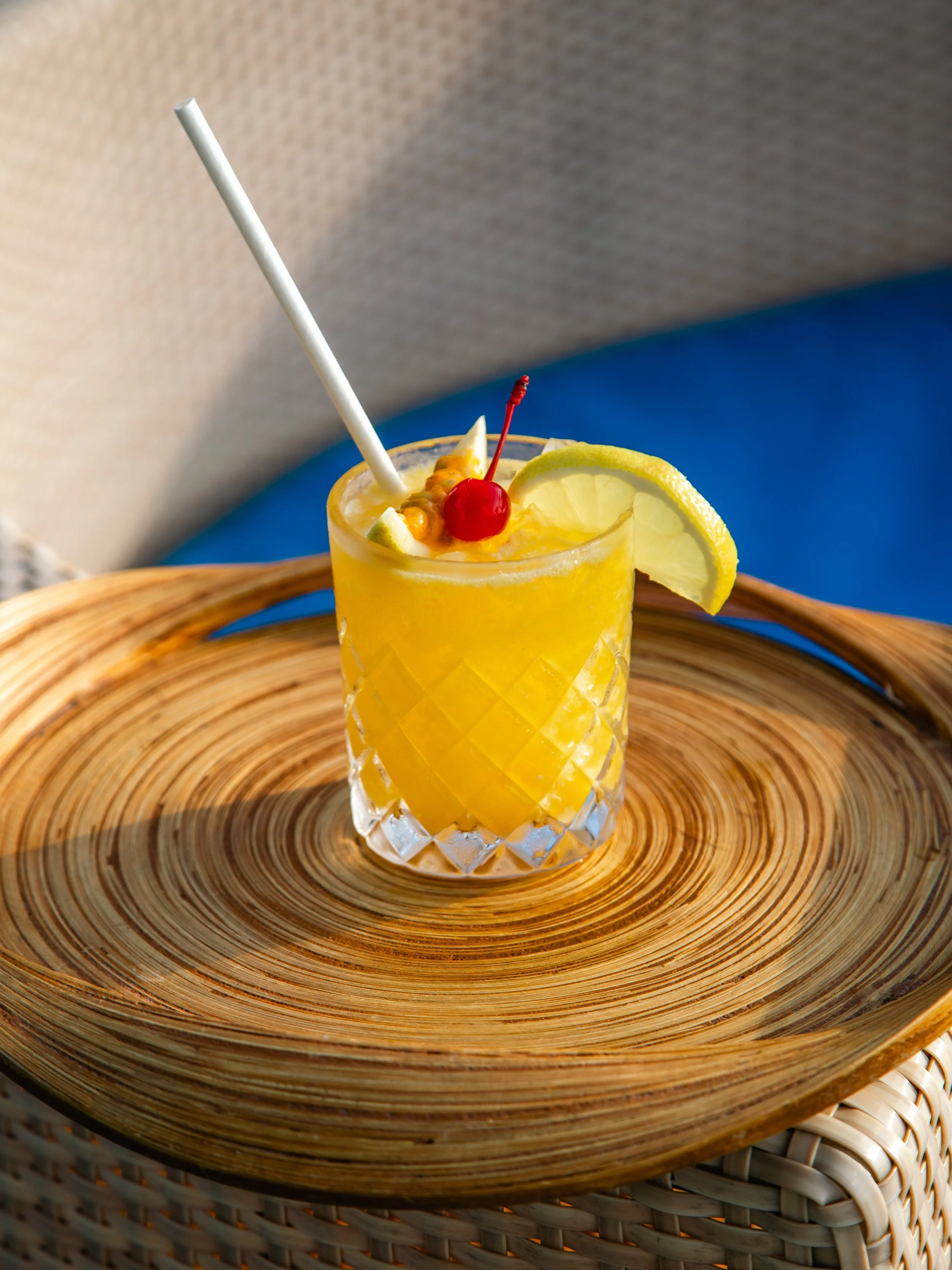 白龙舌兰、草本利口酒、橙汁、百香果、青柠汁